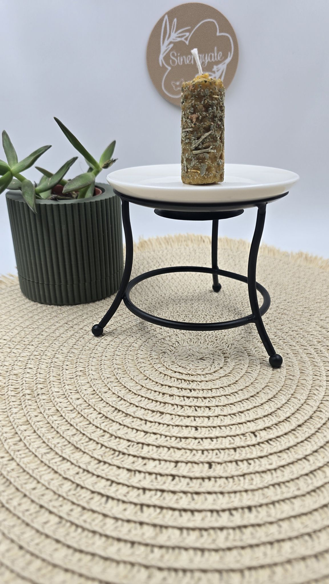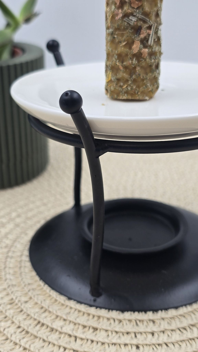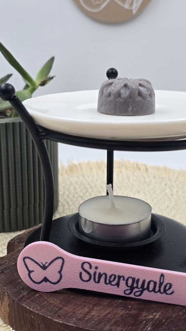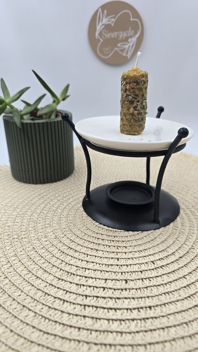 Este quemador de doble uso, es perfecto para utilizarlo como quemador de bombones aromáticos y para quemar velas de soja o de miel. En las imágenes te muestro las diferentes posiciones. Es de hierro y la base de cerámica.
